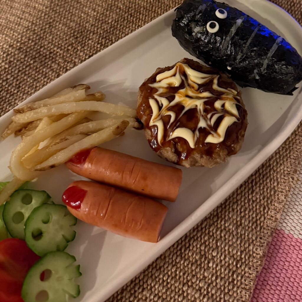 見た目だけちょこっとハロウィン風プレートに。喜んだけど食べなかったよ😇