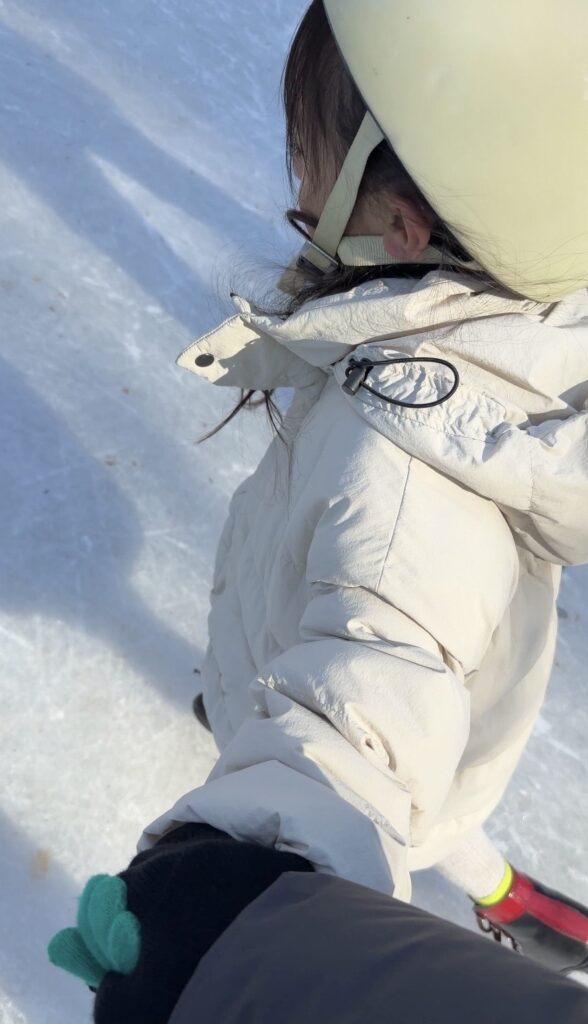 今日はここまでかな?と思ったけど、少しずつ慣れてきたら一緒に手をつないで滑れるようになって、まだ帰りたくない、もっと滑りたいモードに😂