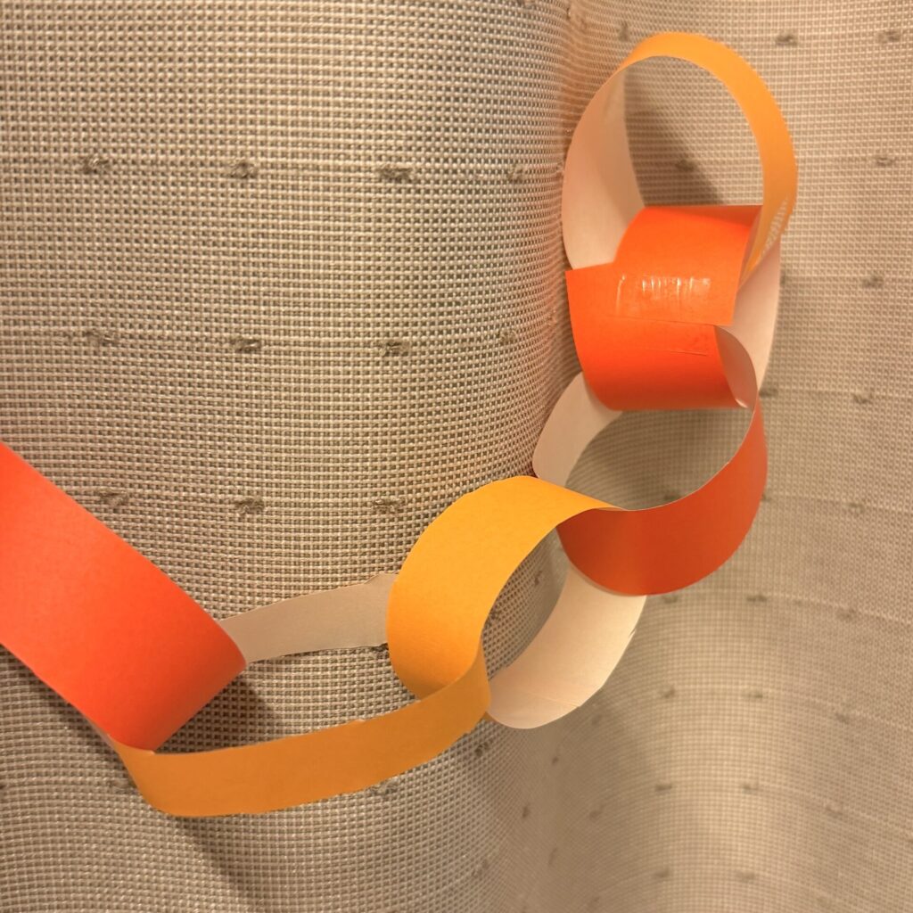 前日は、娘がせっせと折り紙の輪っか飾りを制作😆
