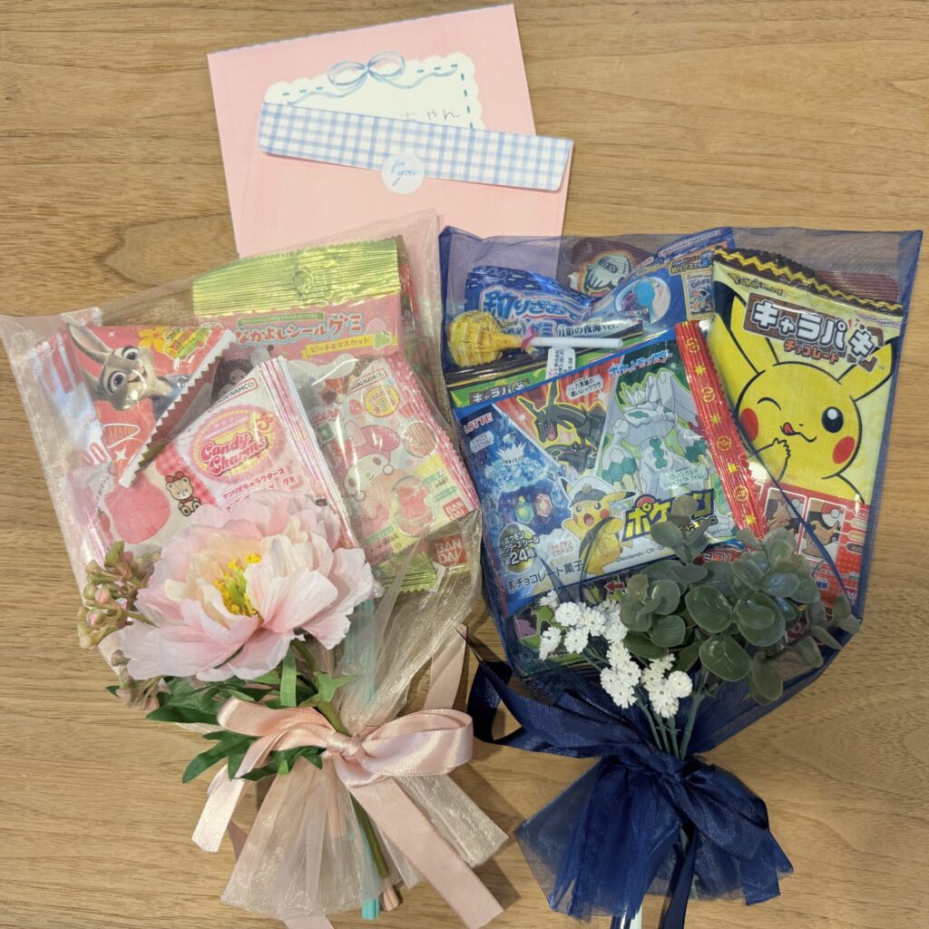 どれにする?ってお菓子を選んだり、リボンを結んだり😊
